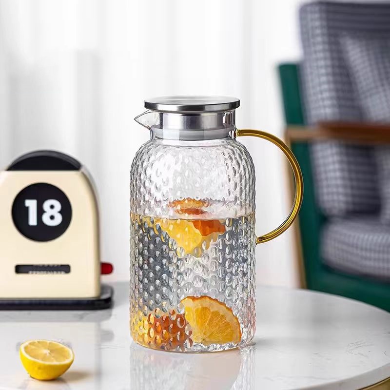 The Glass cold water kettle with stainless steel cover and filter,volume is 1800ml.